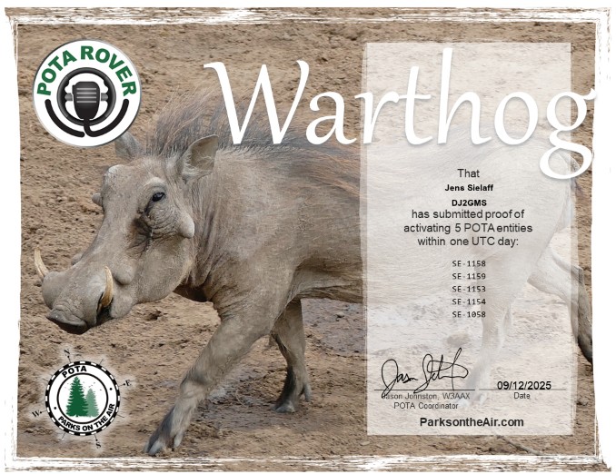 Activation of POTA DE-0720 Wurzacher Ried National Nature Reserve Initial-Activation of POTA DE-1114 Rot, Bellamonter Rottum und Dürnach Flora and Fauna Reserve Initial-Activation of POTA SE-1124 Nabbens naturreservat Nature Reserve Initial-Activation of POTA SE-1134 Skäldervikens östra klippkust Natura 2000 Activation of POTA SE-1058 Baldernäs Nature Reserve / Herrgad