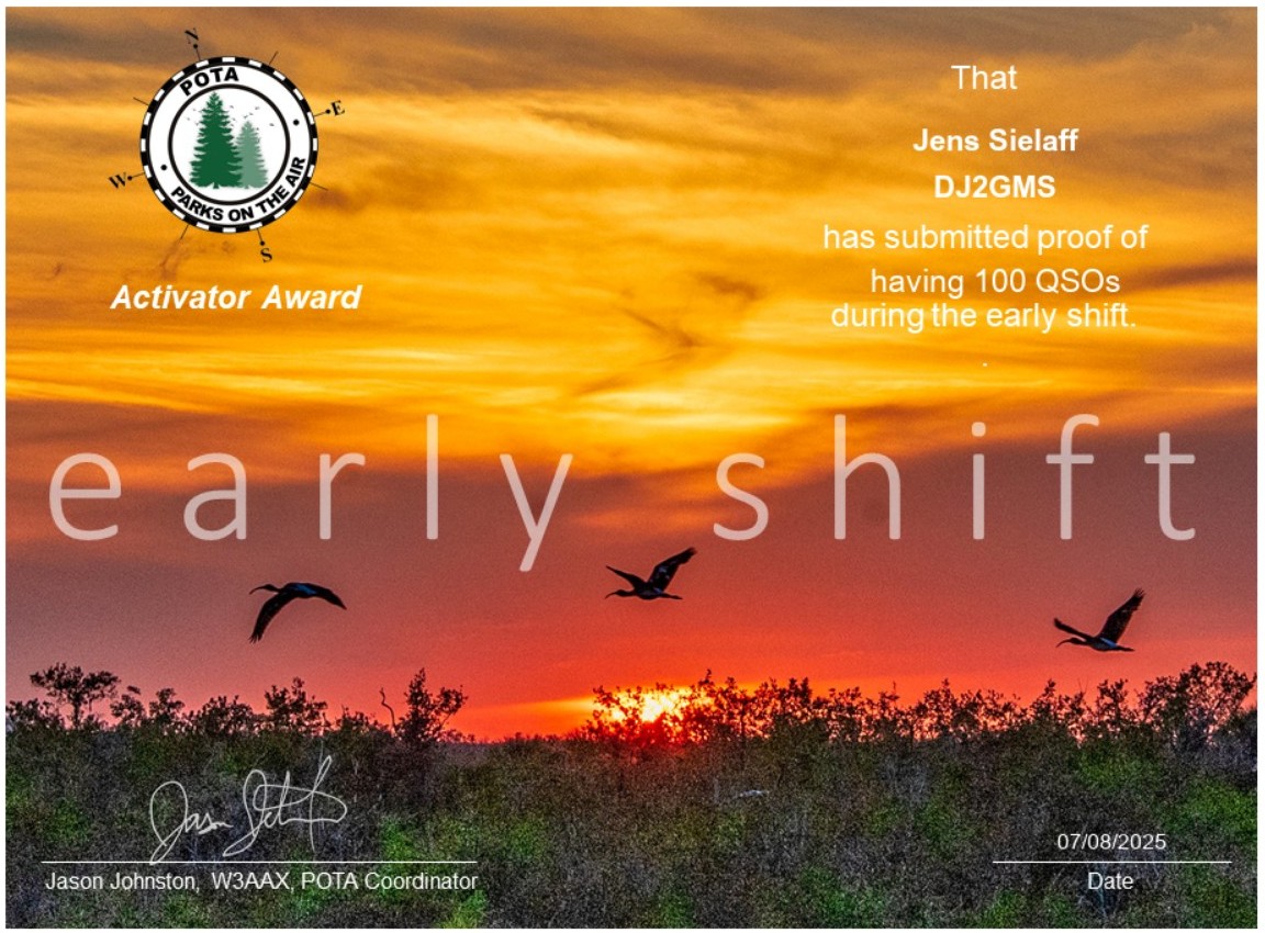 DE-1001 Weser-Harz-Heide-Radfernweg National Recreation Trail Initial-Activation of POTA SE-1124 Nabbens naturreservat Nature Reserve Initial-Activation of POTA SE-1134 Skäldervikens östra klippkust Natura 2000 Initial-Activation of POTA SE-1131 Lunnabjär Nature Reserve Initial-Activation of POTA SE-1130 Görslövsåns mader Nature Reserve
