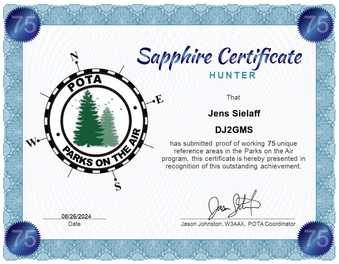 Initial-Activation of POTA DK-0109 Æbelø, havet syd for og Nærå Natura 2000 "Initial, and my 1st qrp only, activation of DK-0109 using the unique JPX-20 transceiver:" Equipment used: Codan 2110,internal 6Ah LiFePo battery, 25w, inv-vee 40m dipole, apex 4,5m agl. BBT - Bayerischer Bergtag - Februar 2025 Sektion A - 144 MHz: Platz 3 - 11.278 Punkte - 59 QSO - 48 TN