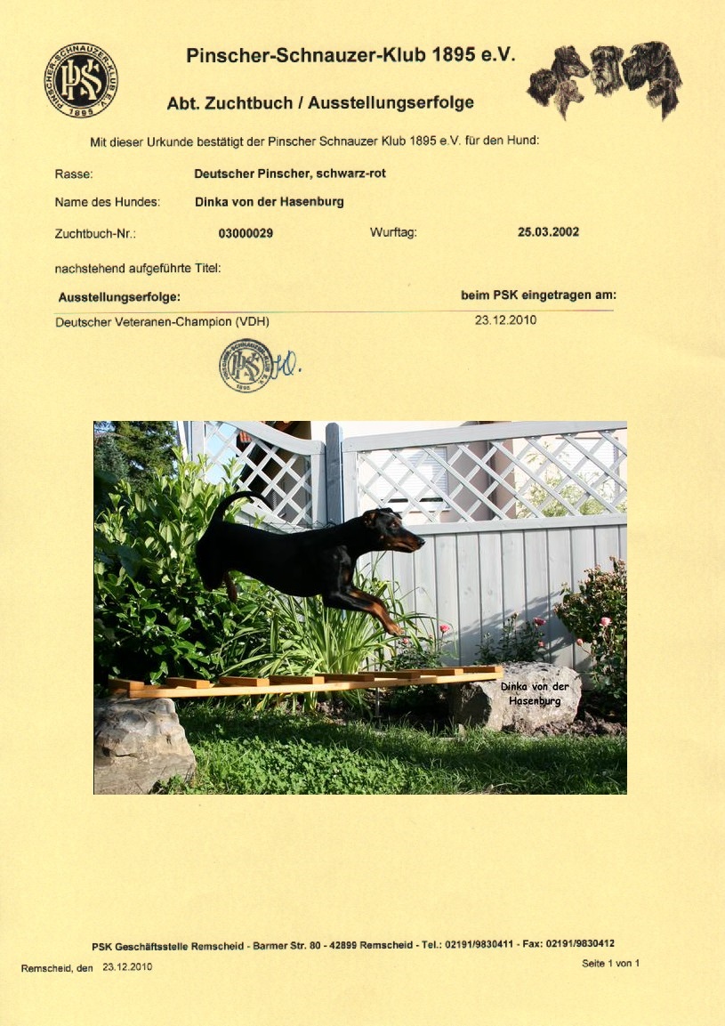 Ehrenring beim VDH unter den 10 Besten Veteranen.
